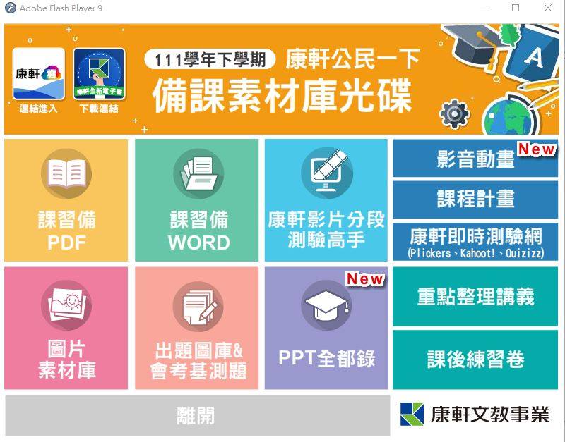 111學年下學期 國中 康軒版 公民備課資料庫 1年級(含課本、卷類資源、備課用書、習作含解答、教學輔助資源)教學光碟