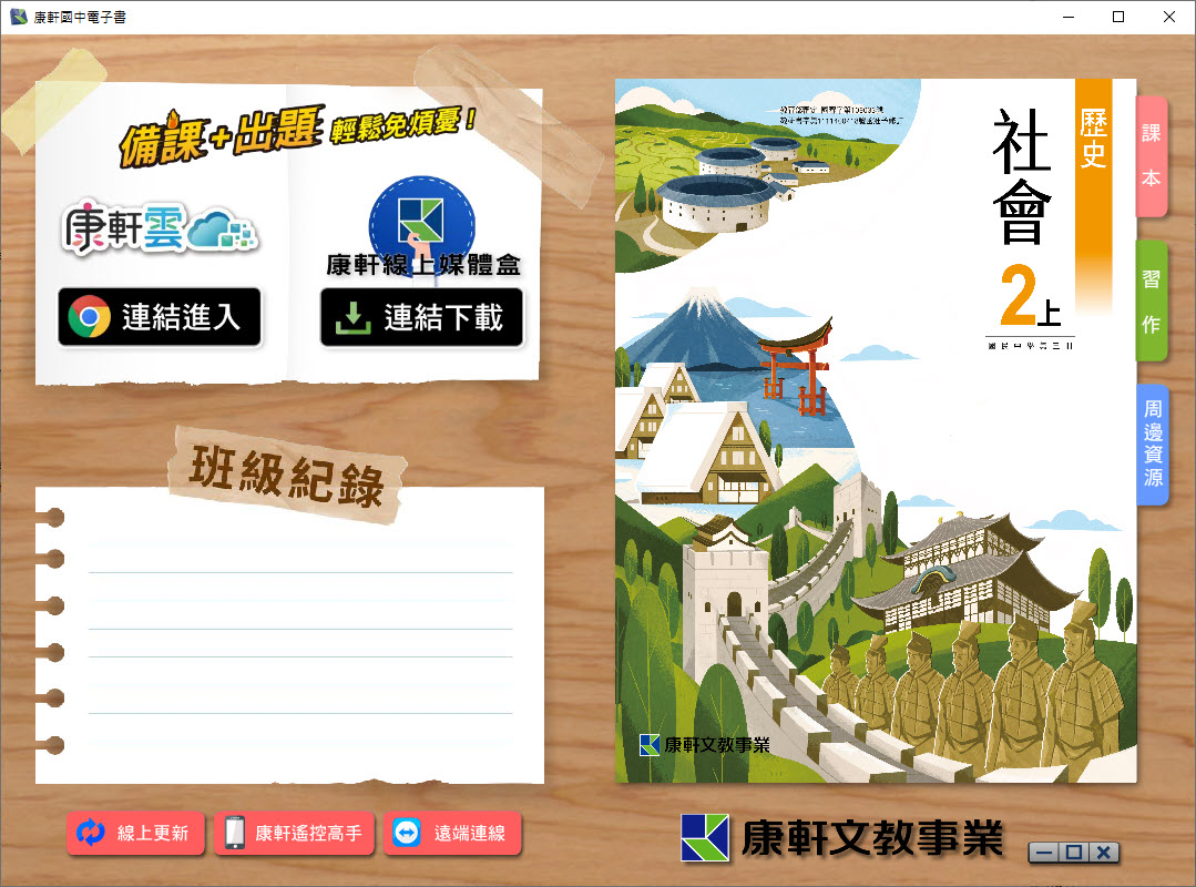 112學年上學期 國中 康軒版 歷史電子書 2年級(含課本、習作含解答、教學資源)教學光碟