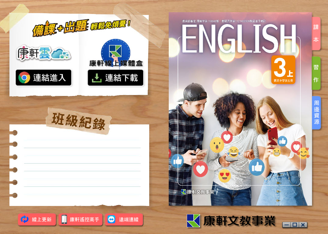 112學年上學期 國中 康軒版 英語電子書 3年級(含課本、習作含解答、教學資源)教學光碟