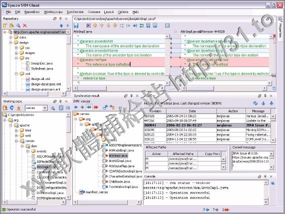 軟體使用Java開發,體積比TortoiseSVN大,不過類似於IDE的介面使用起來比TortoiseSVN